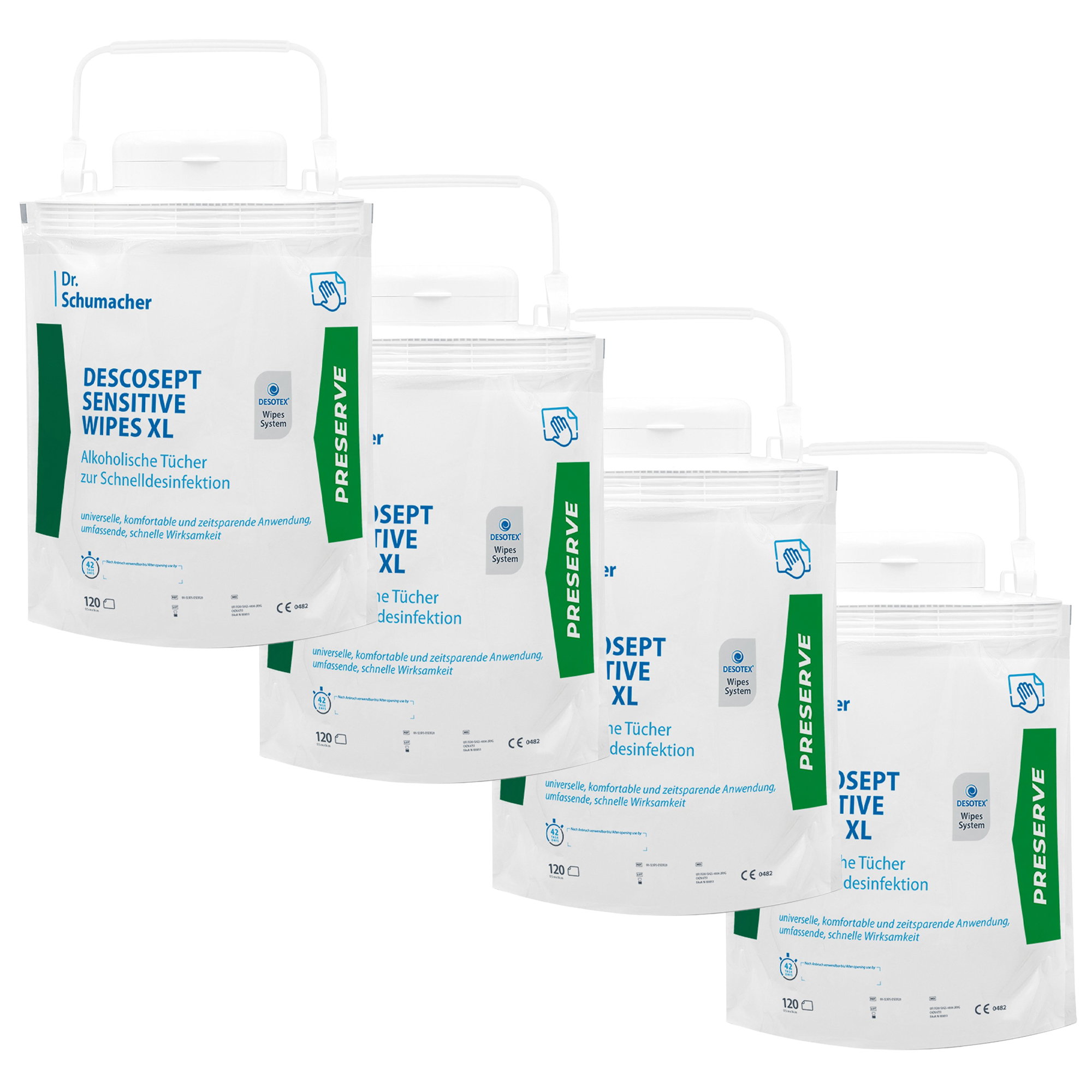 - Erweiterte Standzeit: bis zu 42 Tage bei ausgewählten VAH-gelisteten Flächendesinfektionsmitteln der Dr. Schumacher GmbH