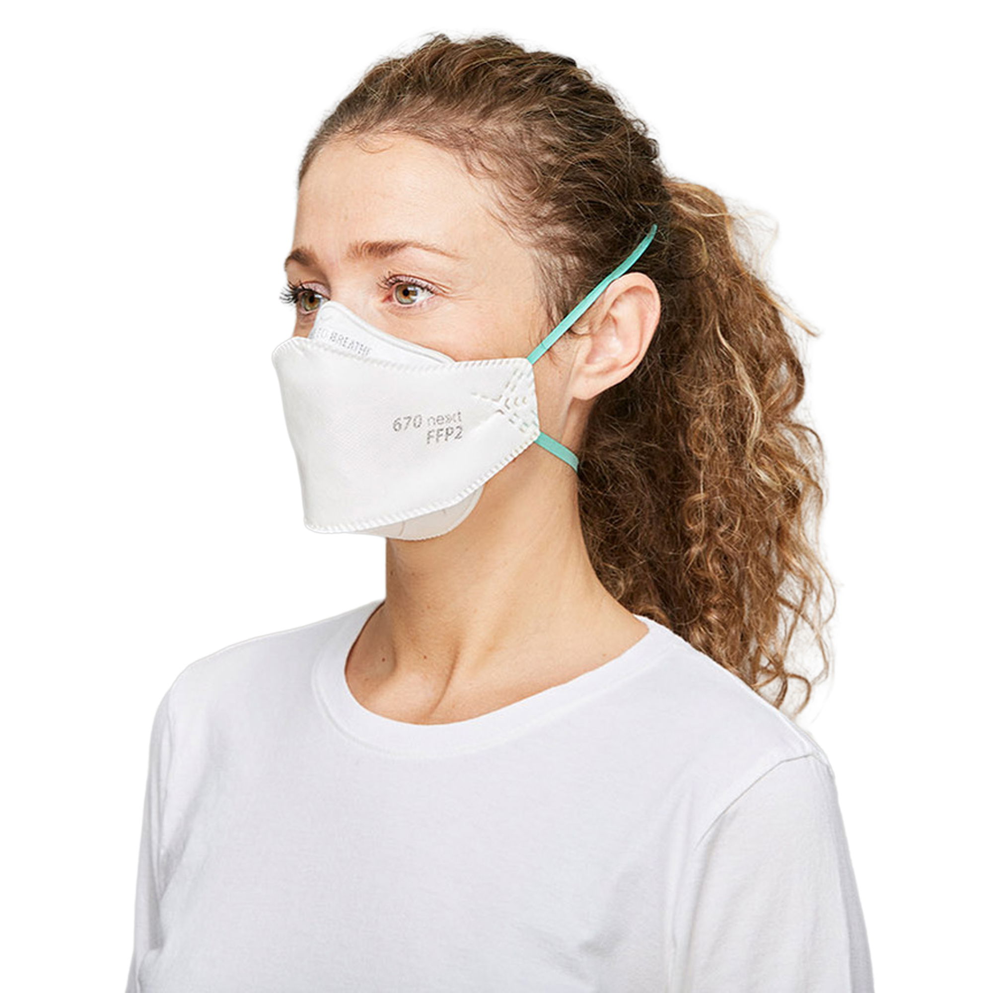 Die FFP2-Atemschutzmaske BLS 670next ist eine doppelt gefaltete Einwegmaske (NR), die durch ihre besondere Bauweise einen geringen Atemwiderstand und hohen Tragekomfort bietet. Dank hygienischer Einzelverpackung, optimal anpassbarem Nasenbügel und hautfreundlichen Textilbändern eignet sich die Maske ideal für längere Tragezeiten in anspruchsvollen Arbeitsumgebungen. Die Maske ist in zwei Grössen erhältlich und gewährleistet so einen passgenauen Sitz.