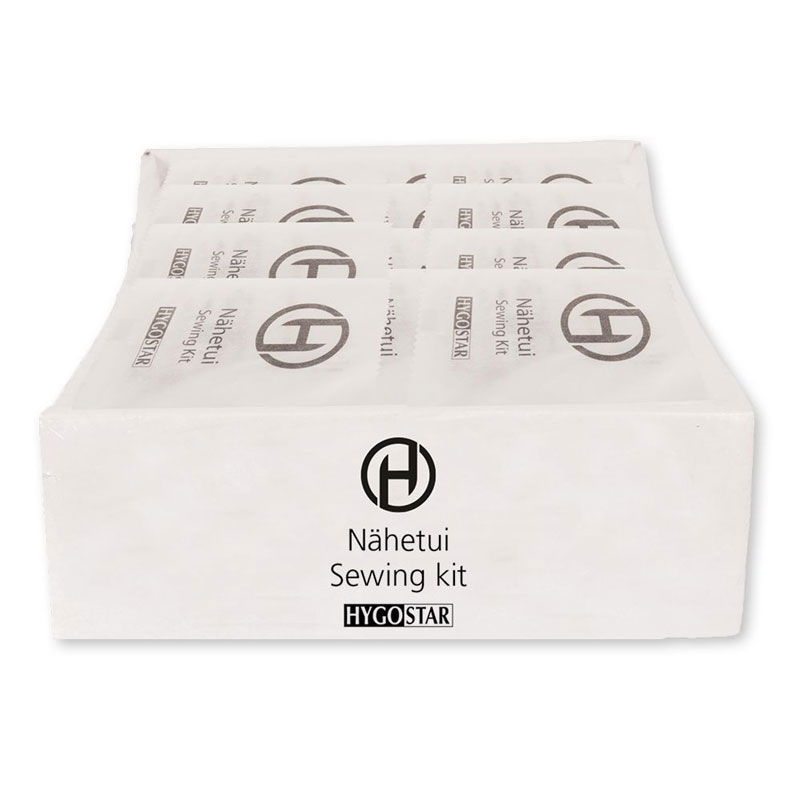Für alle Fälle: Ein Nähset ist ein aufmerksamer Service für Hotelgäste und im Ernstfall Gold wert. Den Knopf schnell wieder annähen oder eine aufgeplatzte Naht reparieren: Mit dem Nähset ist alles schnell wieder gut. Das Nähset ist speziell für Hotels und besteht ganz klassisch aus Nadel, Nähgarn in sechs unterschiedlichen Farben (rot, blau, schwarz, weiß, grau, gelb), zwei Knöpfen sowie einer Sicherheitsnadel. Die Sets sind einzeln in einem schlichten Beutel verpackt. Das zeitlose Design passt universell zu jeder Inneneinrichtung. Ausserdem sind die Hotel-Nähsets in einem attraktiven Verkaufs-Tray verstaut, so dass sie auch im Verkaufsregal im Großhandel eine gute Figur machen.