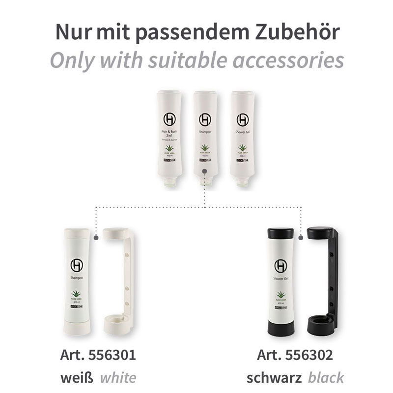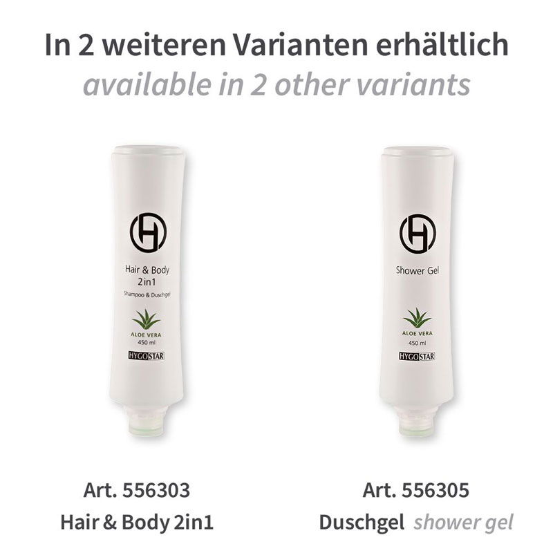 Das Hotel-Shampoo mit frischem Aloe Vera Duft ist universell für alle Hotels und Unterkünfte mit Badezimmer geeignet. Das Shampoo reinigt und pflegt die Haare. Es ist in einer besonders cleveren Squeeze-Falsche eingefüllt. So entnehmen Sie das Shampoo sehr dosiert, sparsam und mit nur einem Handgriff. Einfach Flasche zusammendrücken und das Hotelshampoo herausdrücken. Bestellen Sie am besten den passenden Wandhalter für Squeeze-Flaschen dazu.