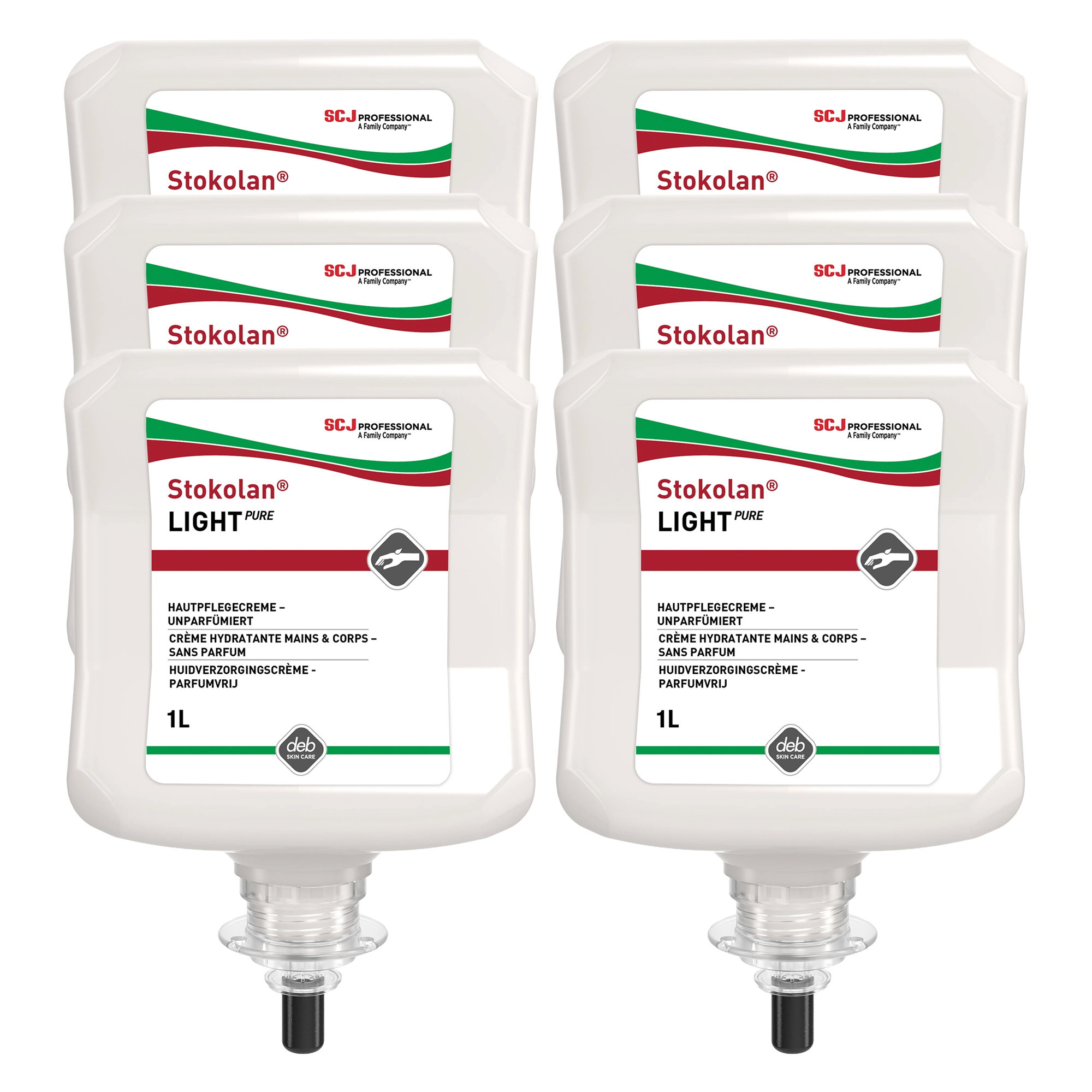 Stokolan LIGHT PURE ist eine leichte Hautpflegecreme für die professionelle Anwendung und eignet sich für normale bis trockene Haut. Die nicht fettende Formulierung zieht schnell ein und hinterlässt kein klebriges oder fettiges Gefühl, was die regelmässige Anwendung im Arbeitsalltag erleichtert. Die Creme ist unparfümiert und farbstofffrei, wurde als haut-hypoallergen getestet und ist für empfindliche Haut entwickelt. Pflegende Inhaltsstoffe wie Shea Butter, Allantoin und Glyzerin unterstützen die Feuchtigkeitsversorgung und helfen, trockene oder raue Haut spürbar geschmeidiger zu halten. Stokolan LIGHT PURE kann in vielen Bereichen eingesetzt werden, unter anderem in Industrie, Lebensmittelbetrieben, Gesundheitswesen sowie in Büros und öffentlichen Einrichtungen, und ist zudem mit alkoholbasierten Handdesinfektionsmitteln sowie gängigen Handschuhmaterialien kompatibel.