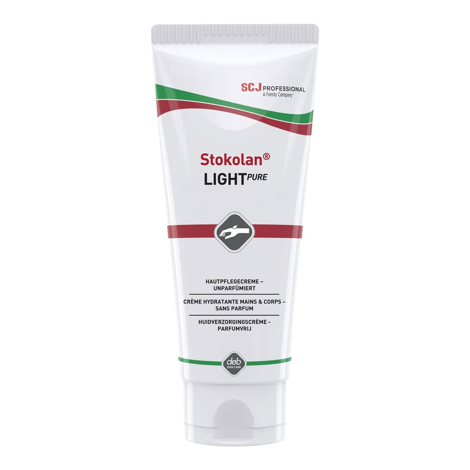 Stokolan LIGHT PURE ist eine leichte Hautpflegecreme für die professionelle Anwendung und eignet sich für normale bis trockene Haut. Die nicht fettende Formulierung zieht schnell ein und hinterlässt kein klebriges oder fettiges Gefühl, was die regelmässige Anwendung im Arbeitsalltag erleichtert. Die Creme ist unparfümiert und farbstofffrei, wurde als haut-hypoallergen getestet und ist für empfindliche Haut entwickelt. Pflegende Inhaltsstoffe wie Shea Butter, Allantoin und Glyzerin unterstützen die Feuchtigkeitsversorgung und helfen, trockene oder raue Haut spürbar geschmeidiger zu halten. Stokolan LIGHT PURE kann in vielen Bereichen eingesetzt werden, unter anderem in Industrie, Lebensmittelbetrieben, Gesundheitswesen sowie in Büros und öffentlichen Einrichtungen, und ist zudem mit alkoholbasierten Handdesinfektionsmitteln sowie gängigen Handschuhmaterialien kompatibel.