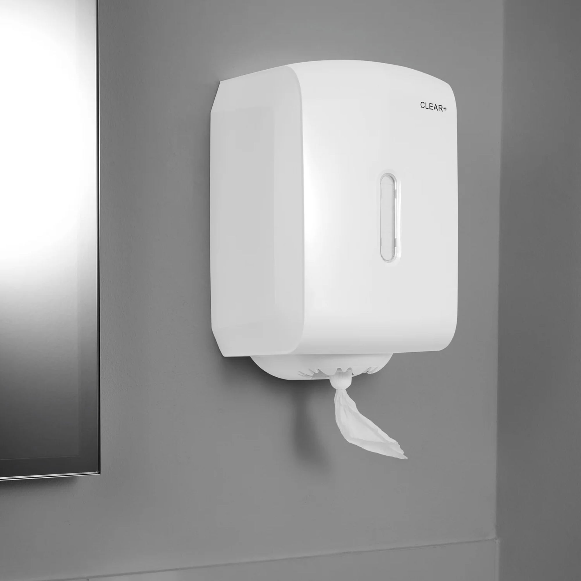 Der Clear+ Centerfeed Handtuchspender ist die praktische Lösung für stark frequentierte Bereiche, in denen Papier sowohl zum Händetrocknen als auch für die Reinigung von Oberflächen gebraucht wird, z. B. in Büroküchen, Kantinen oder in der Industrie. Die Papierentnahme erfolgt hygienisch und bequem von der Mitte der Rolle aus, auch einhändig. Dank einstellbarem Auslass können Nutzer genau die Papierportion entnehmen, die sie benötigen, was Verbrauch und Abfall reduziert. Bei Bedarf lässt sich der Spender einfach von Portionsausgabe auf Endlosausgabe umstellen. Der Spender ist robust, abschliessbar und für den täglichen Dauereinsatz ausgelegt.