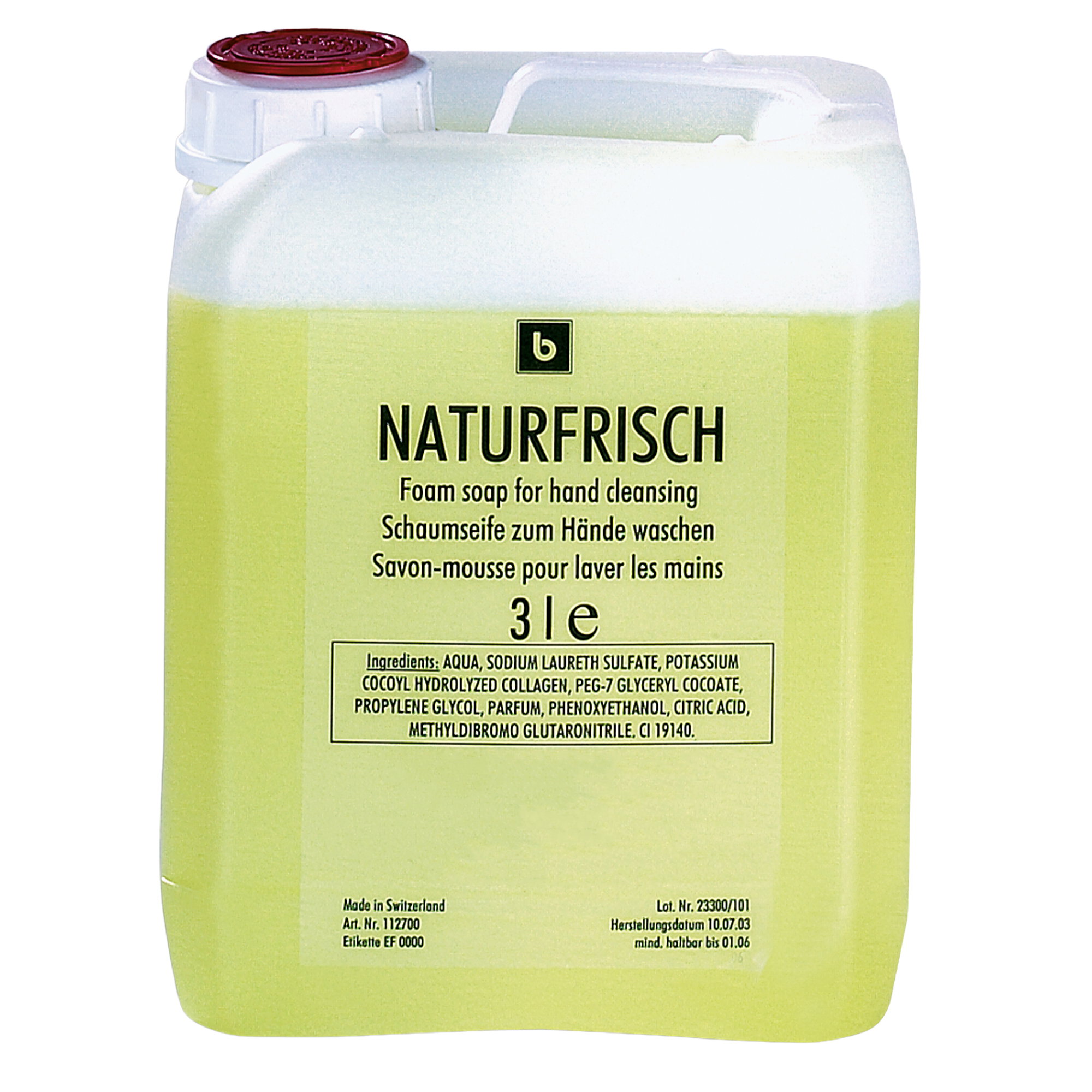 Die Naturfrisch Schaumseife ist eine Handseife, die dermatologisch getestet wurde und besonders hautfreundlich ist. Die Seife ist biologisch leicht abbaubar und hat einen angenehmen frischen Duft.