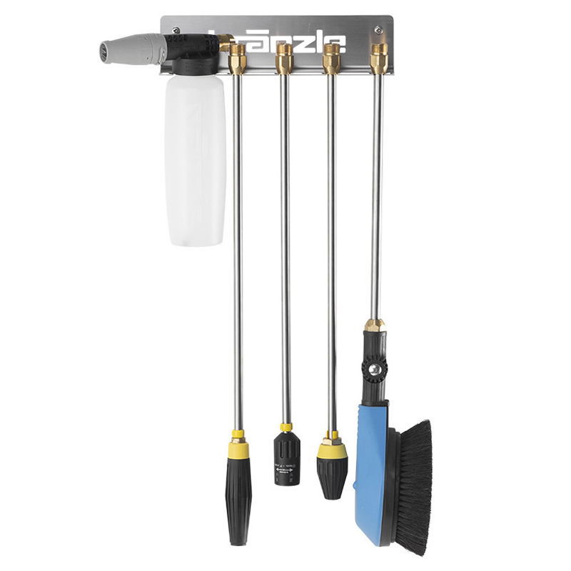 Die Premium Wandhalterung ist ideal geeignet zur Aufbewahrung von bis zur vier Reinigungslanzen und einer Schaumlanze. Sie wird inklusive einer Pistolenhaltung D12 geliefert.