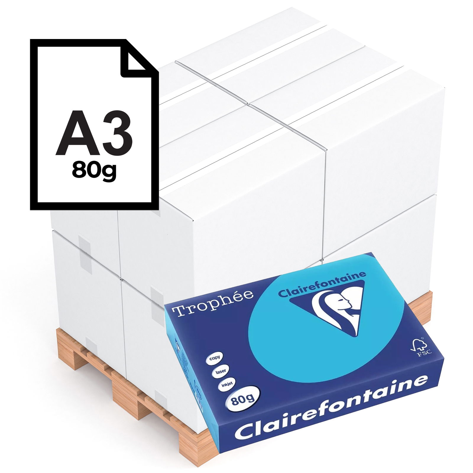 Kopierpapier Trophée Clairefontaine | A3 | 80 g | viertel Palette