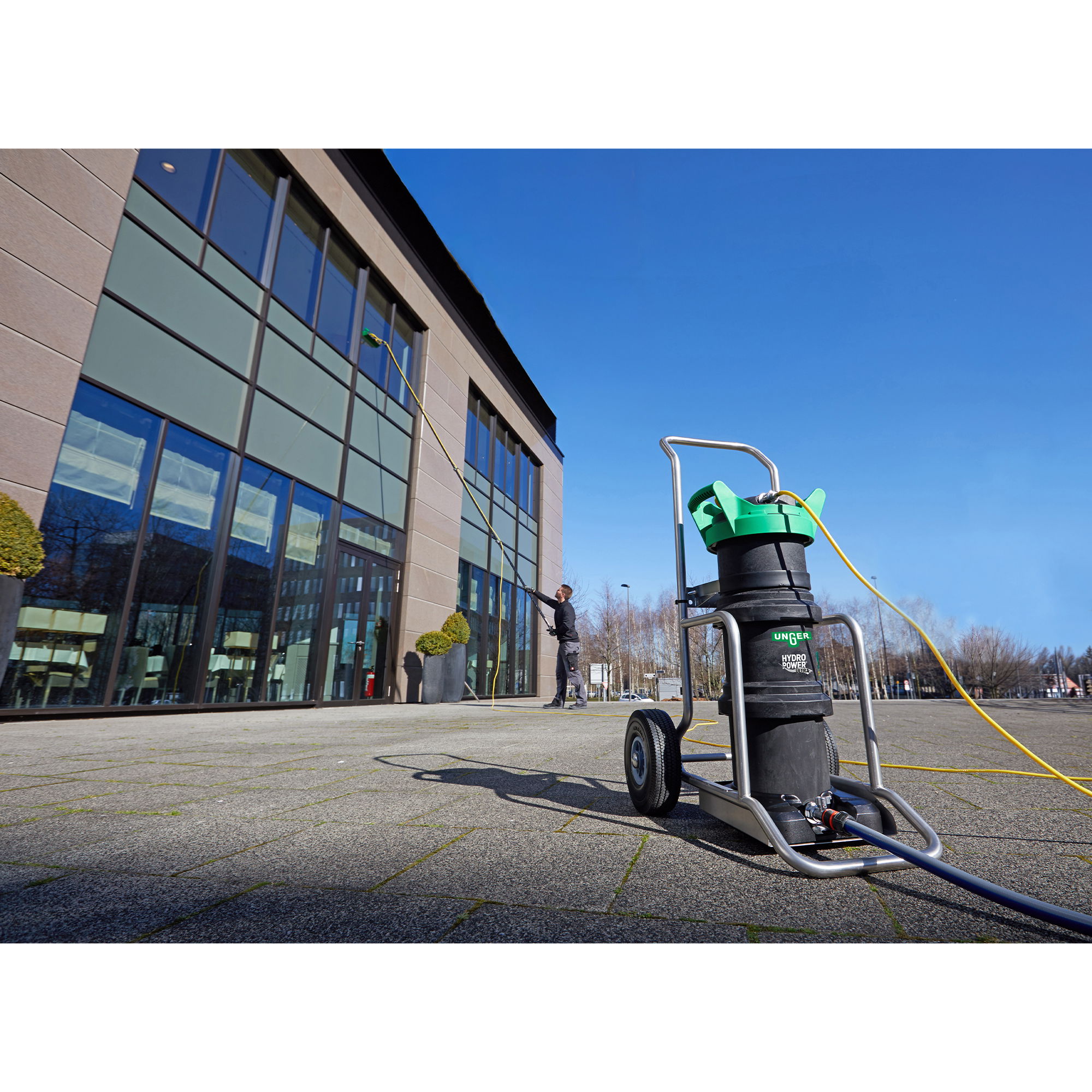 Das UNGER HydroPower Ultra Filter LC System nutzt die Deionisierung zur Erzeugung von Reinwasser mit besonders hoher Wasserqualität. Dabei werden 100 Prozent der gelösten Mineralien aus dem Leitungswasser entfernt, sodass das resultierende Wasser direkt zur streifenfreien Reinigung eingesetzt werden kann.