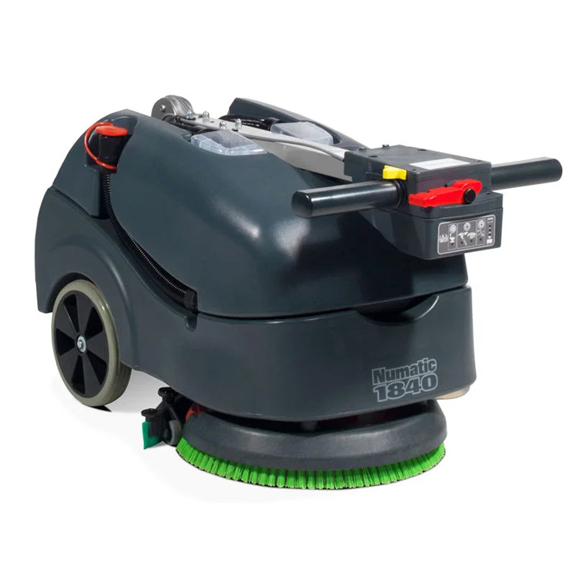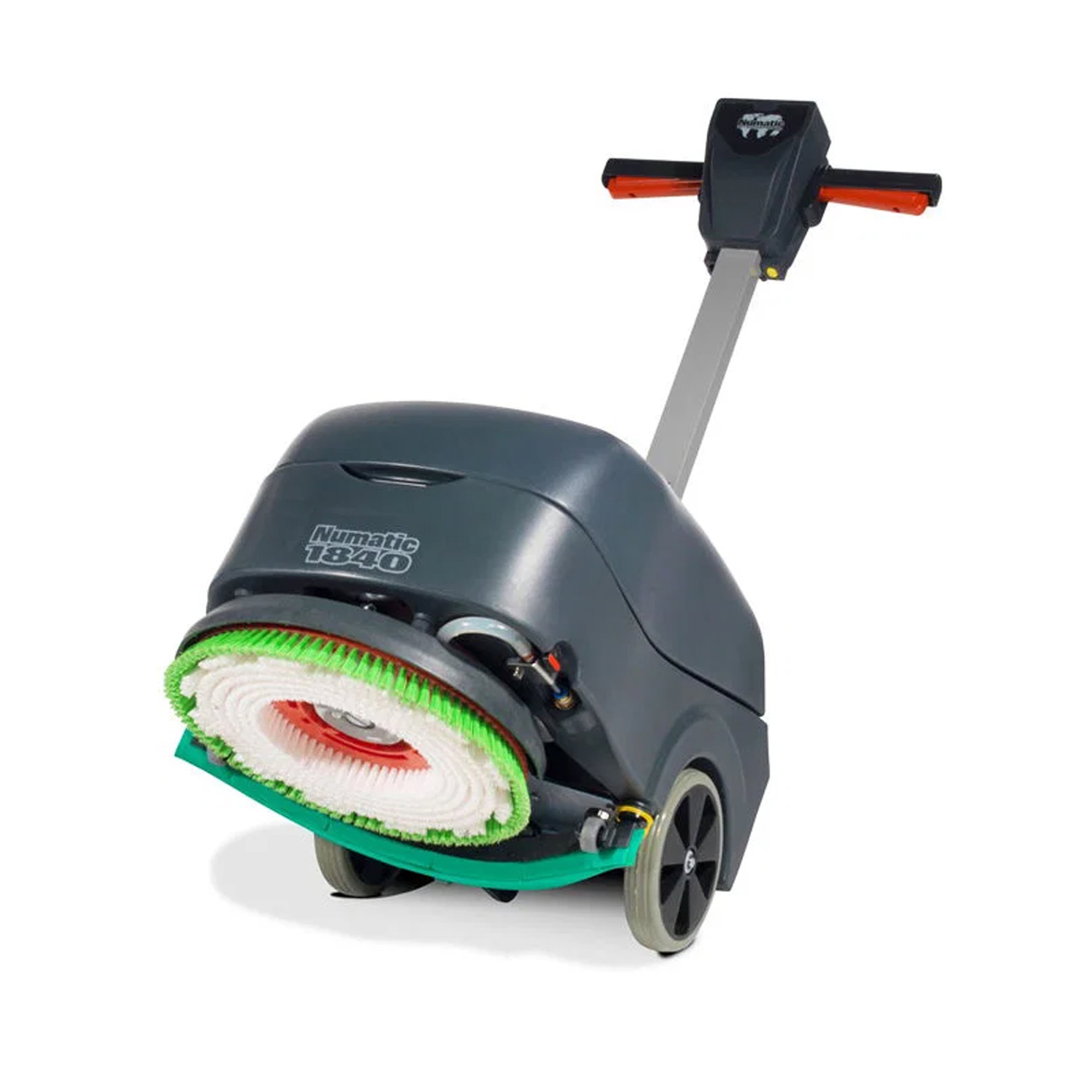 Die Numatic TT1840G Scheuersaugmaschine kann wahlweise mit einer Scheuerbürste oder einem PadLoc-Treibteller erworben werden. Sie zeichnet sich durch ihre hohe Kompaktheit aus und eignet sich besonders gut für die Reinigung kleiner Flächen.