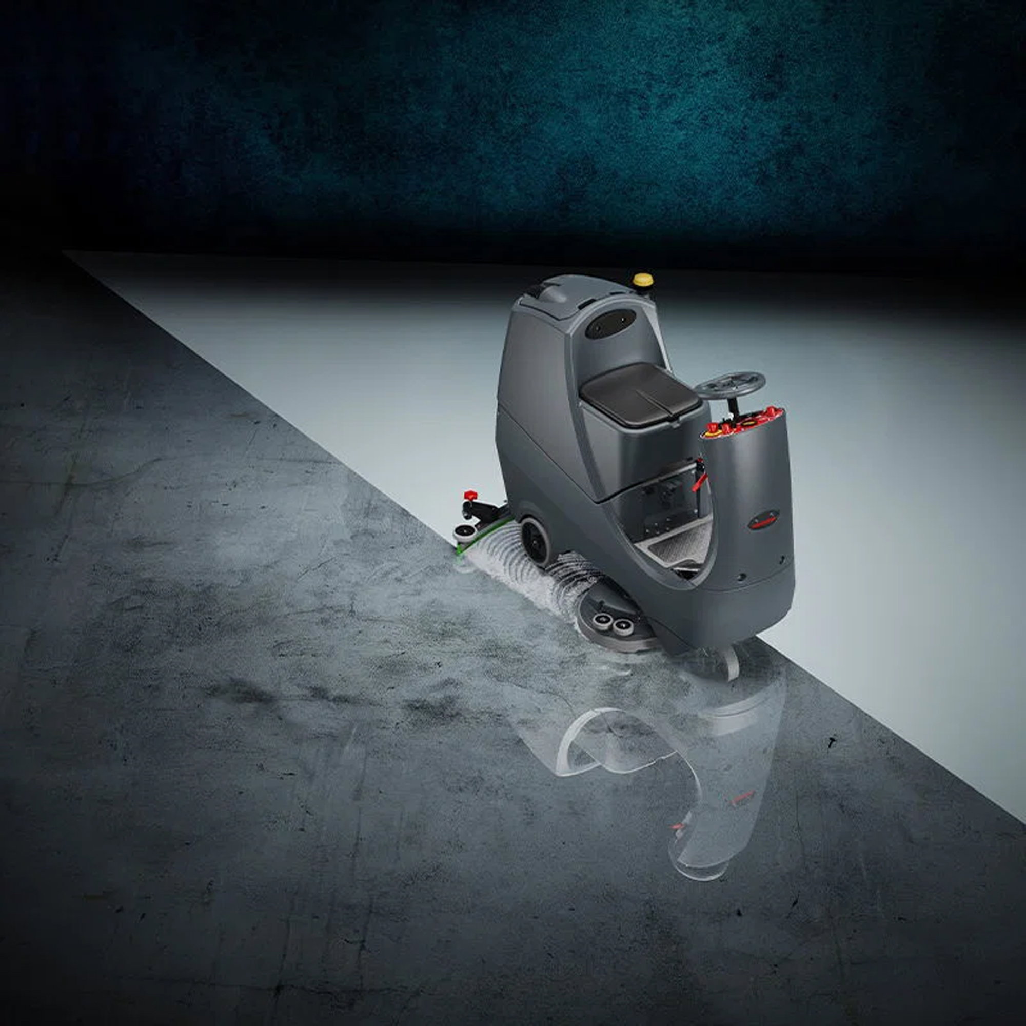 - Kompakte Aufsitz-Scheuersaugmaschine für mittlere bis große Flächen