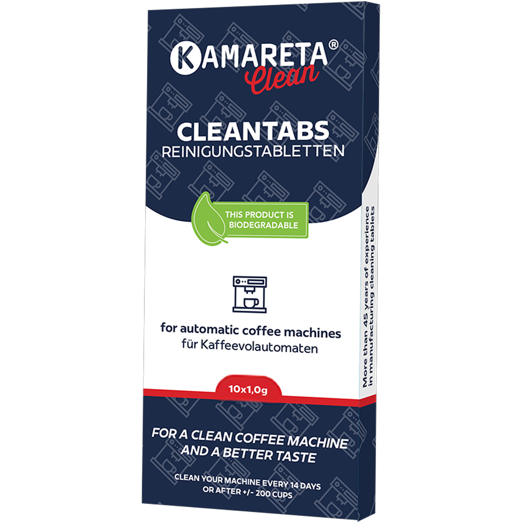 Die Kamareta Reinigungstabletten reinigen Kaffeemaschinen zuverlässig und helfen, Ablagerungen wie Kaffeefette und Kaffeerückstände zu lösen. Sie sind für Vollautomaten, Espresso- und Filterkaffeemaschinen entwickelt und wirken auch in sensiblen Bereichen wie Brühgruppe, Ventilen, Klappen und feinen Leitungen. Eine regelmässige Reinigung reduziert Service- und Reparaturkosten und sorgt dafür, dass Ihr Kaffee wieder frisch und unverfälscht schmeckt. Die 1 g Tabletten mit Ø 15 mm sind universell einsetzbar und für alle Marken geeignet. Pro Reinigungsvorgang genügt eine Tablette.