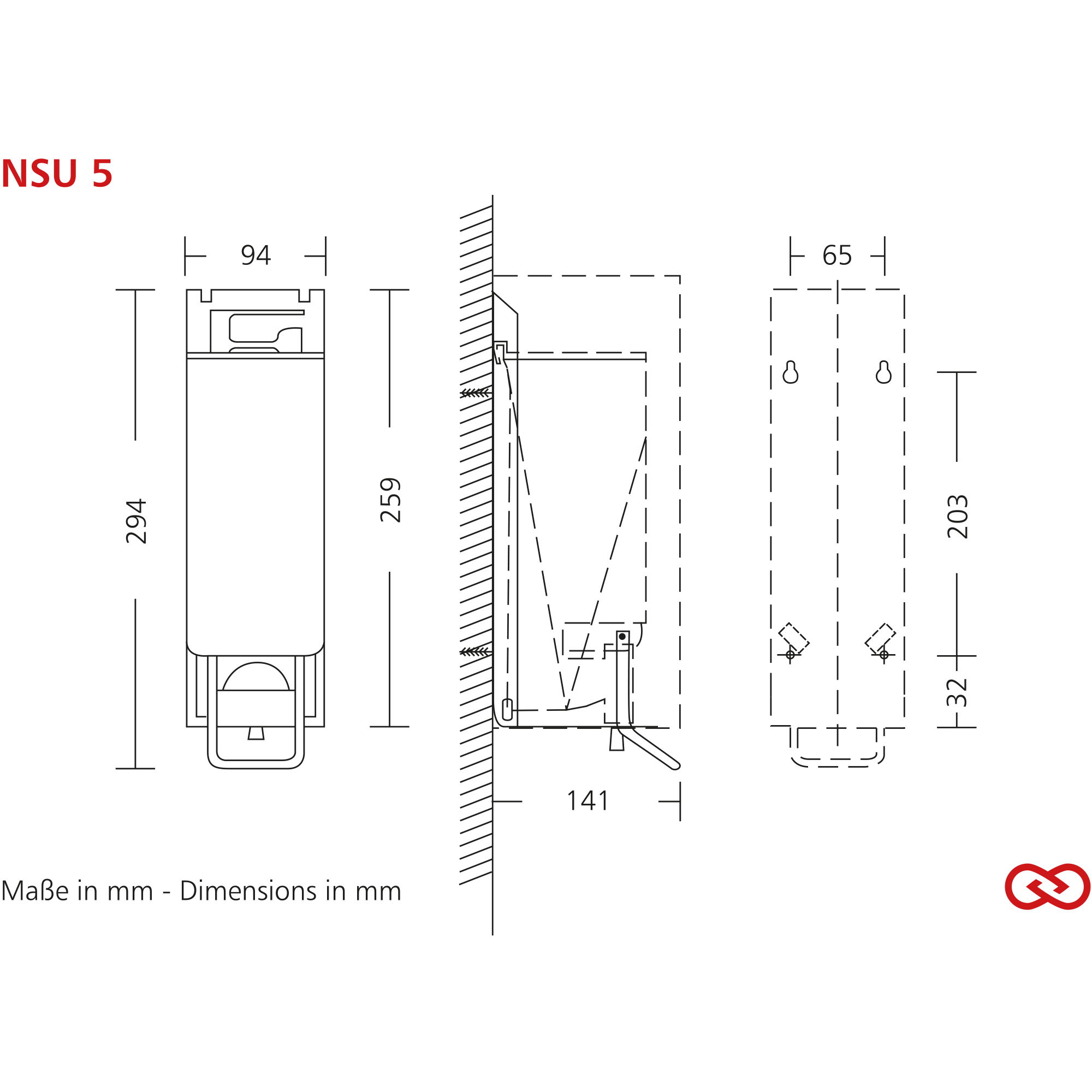 - Abmessungen (B x H x T): 94 x 294 x 141 mm