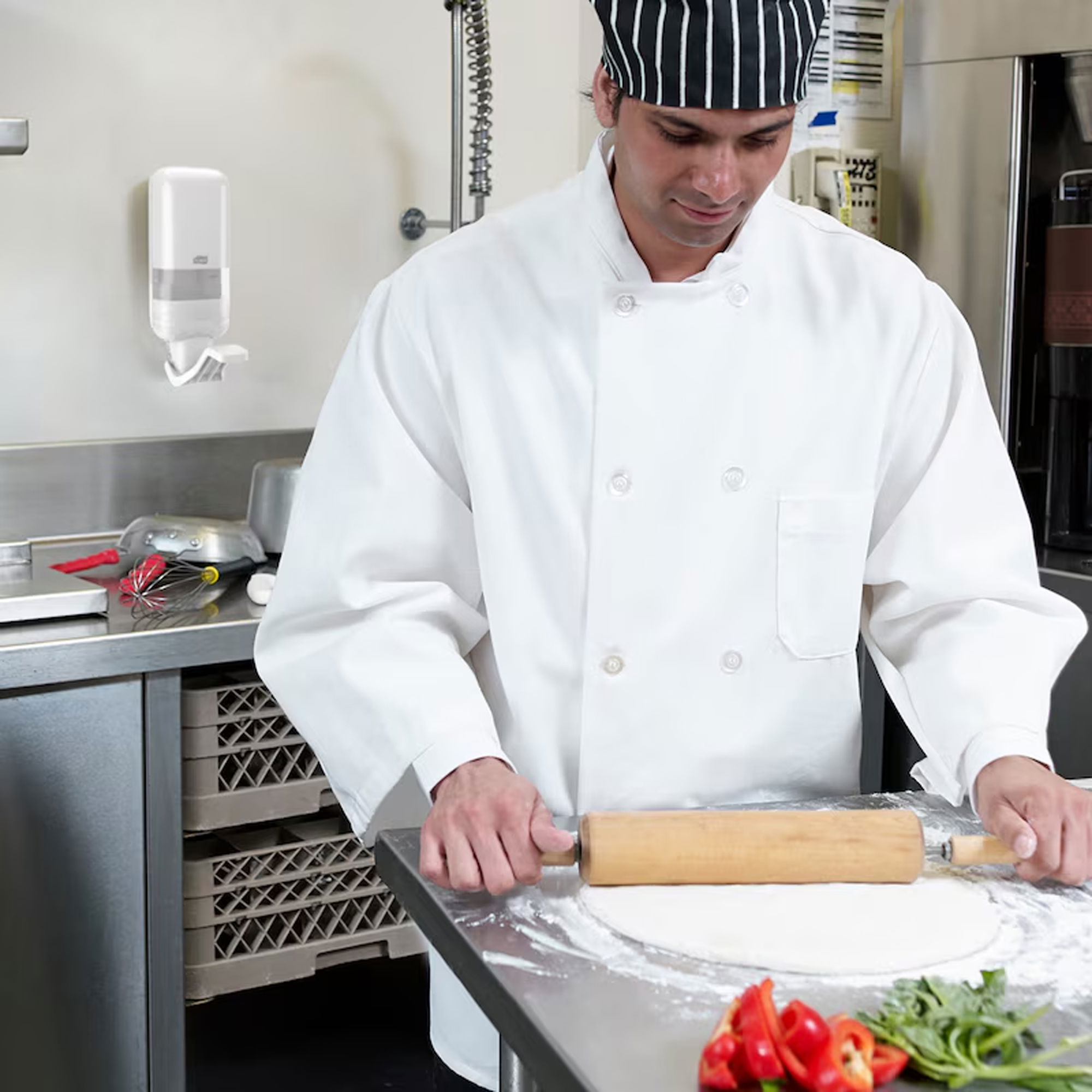Der Tork Spender mit Armhebel ist für Bereiche mit hohen Hygieneanforderungen konzipiert und eignet sich für Seifen, Desinfektionsmittel und Lotionen im Tork S4 System. Der Armhebel ermöglicht eine komfortable, hygienische Bedienung und unterstützt Anwendungen, bei denen möglichst wenig Handkontakt gewünscht ist. Hygienisch versiegelte Flakons mit Einwegpumpe reduzieren das Risiko von Kreuzkontaminationen, während das Sichtfenster den Füllstand jederzeit erkennbar macht. Die variable Dosierung hilft, Verbrauch und Nutzererlebnis gezielt zu steuern, und dank „Easy to use“ Zertifizierung ist der Spender barrierefrei und leicht bedienbar. Das Elevation Design sorgt zudem für ein modernes, funktionales Erscheinungsbild