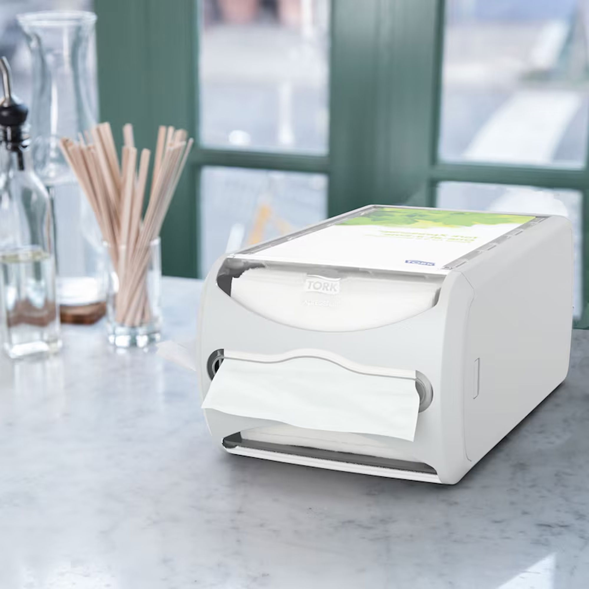Der Tork Xpressnap Thekenspender ist die ideale Lösung für Restaurants mit Selbstbedienung oder eingeschränktem Service, wenn Servietten gut sichtbar und hygienisch bereitstehen sollen. Durch die Einzelblattentnahme berühren Gäste nur die Serviette, die sie wirklich verwenden, was die Hygiene verbessert und den Verbrauch im Vergleich zu herkömmlichen Systemen deutlich senken kann. Der vollständig geschlossene Spender schützt die Servietten zuverlässig vor Verschmutzung. Zusätzlich lässt sich die Werbefläche nutzen, um Botschaften zu platzieren und Gäste gezielt anzusprechen.