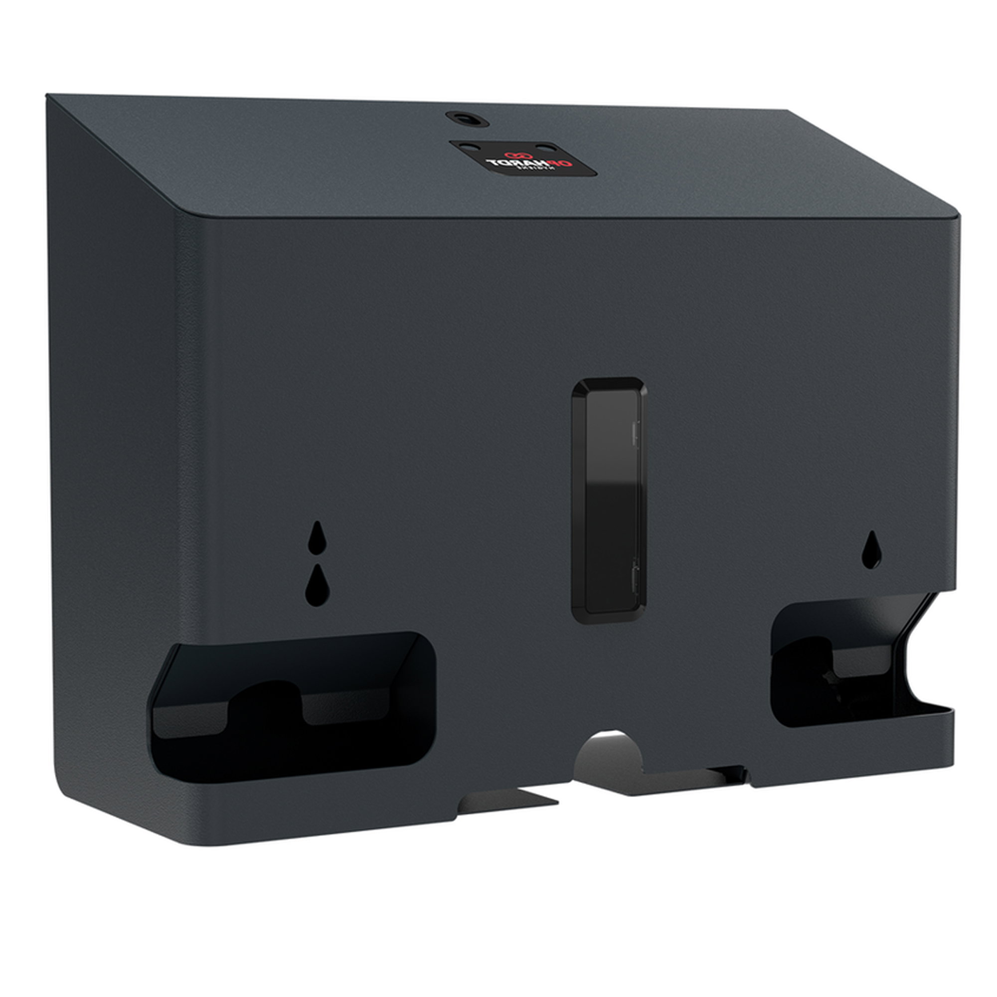 Der SanTRAL Plus FHU 15 P Slate Grey ist ein hochwertiger Damenhygienespender zur offenen Entnahme von Tampons und Binden. Das anthrazit pulverbeschichtete Edelstahlgehäuse mit leichter Struktur wirkt modern und unempfindlich im Alltag, ideal für Waschräume in Unternehmen, Gastronomie und öffentlichen Einrichtungen. Drei separate Entnahmefächer ermöglichen eine übersichtliche Bereitstellung, unabhängig vom Hersteller. Sichtfenster je Fach erleichtern die Füllstandkontrolle, und das abschliessbare Gehäuse schützt den Inhalt zuverlässig. Die Dachschräge verhindert, dass Gegenstände oben auf dem Spender abgelegt werden.