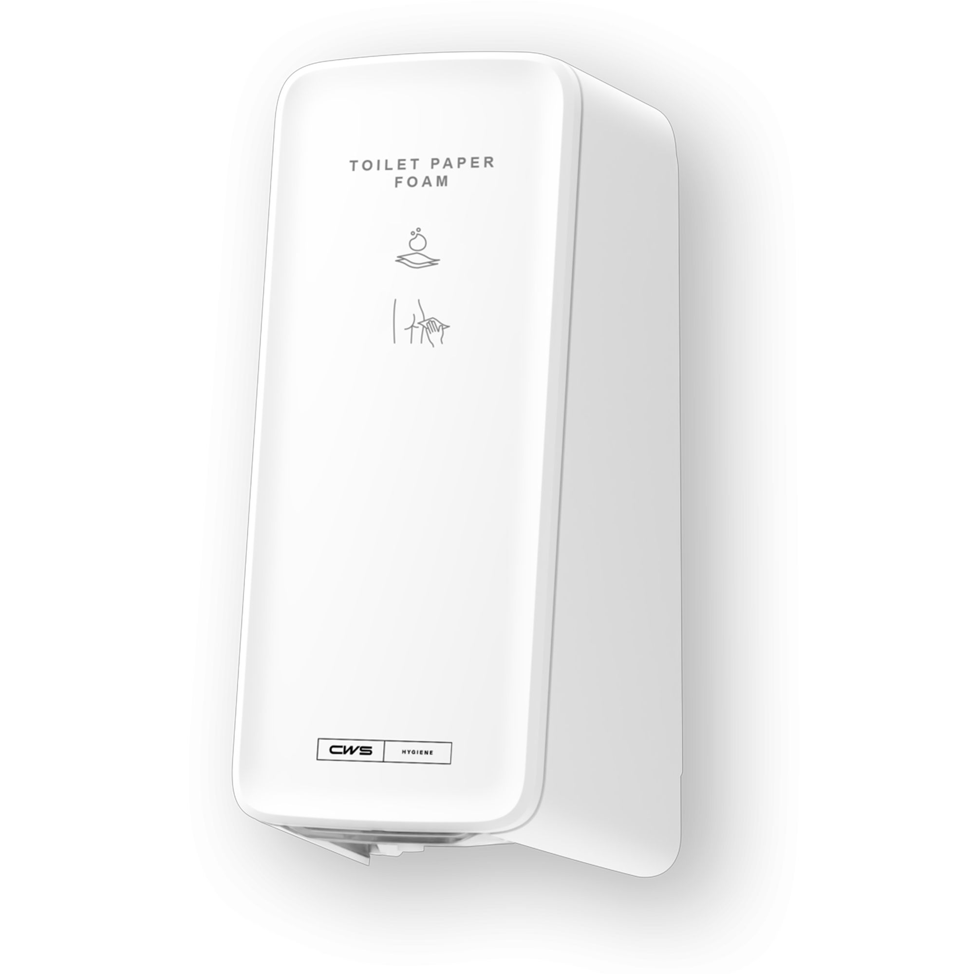 Der CWS PureLine Toilet Paper Foam Non-Touch ist die moderne Alternative zu Feuchttüchern: hygienisch, hautschonend und umweltfreundlich. Der Spender gibt den Reinigungsschaum berührungslos per Sensor ab, was die Hygiene im Waschraum deutlich erhöht. Der Schaum wird einfach auf normales Toilettenpapier aufgetragen und sorgt für ein spürbar gründlicheres Reinigungserlebnis als trockenes Papier, ohne dabei die Umwelt zu belasten.