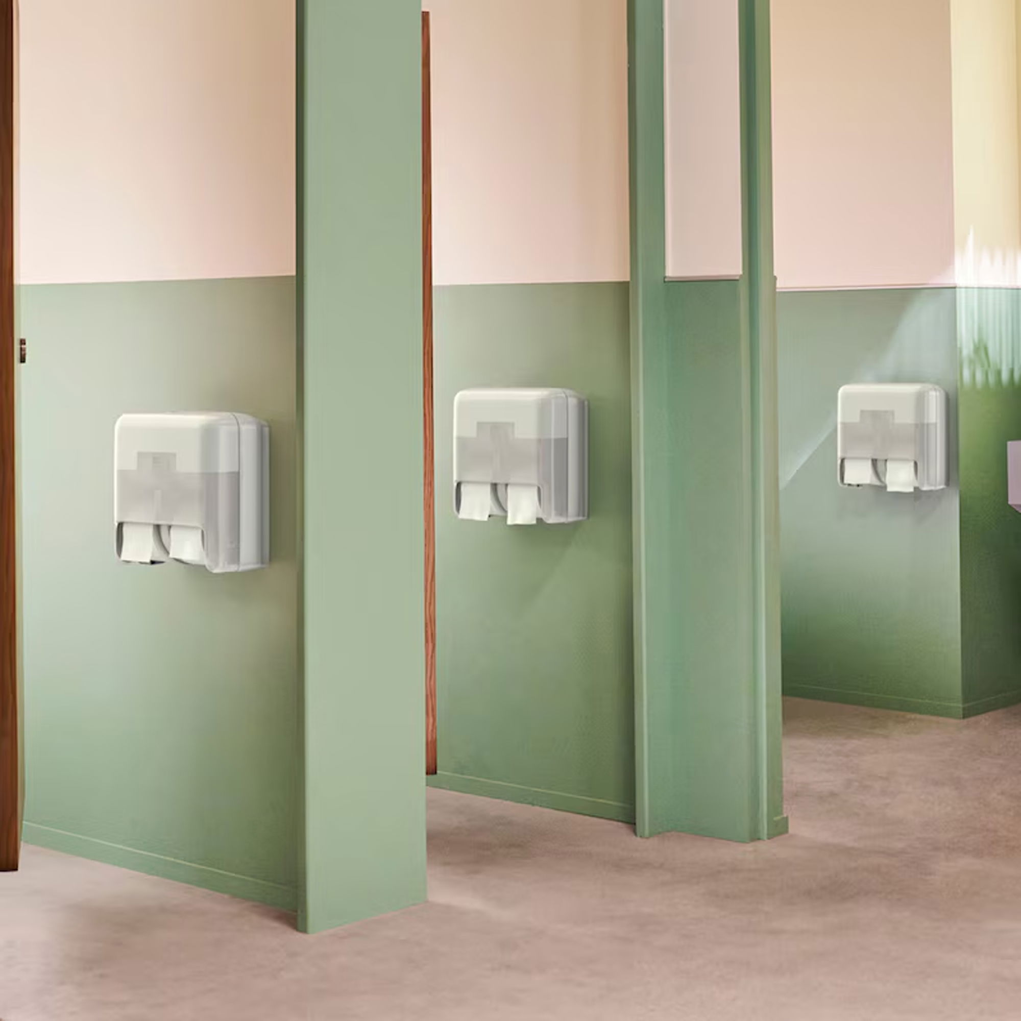Der Tork OptiServe Spender für hülsenloses Toilettenpapier mit 4 Rollen ist die leistungsstarke Lösung für stark frequentierte Waschräume. Das Coreless System bietet im Vergleich zu herkömmlichem Toilettenpapier bis zu dreifache Papiermenge bei deutlich weniger Abfall, da weder Hülse noch Umverpackung anfallen. Der berührungslose automatische Rollentransfer sorgt für eine unterbrechungsfreie Nutzung und unterstützt eine bessere Hygiene. Dank hoher Kapazität und schneller Nachfüllung reduzieren sich Serviceaufwand und Lagerbedarf spürbar.