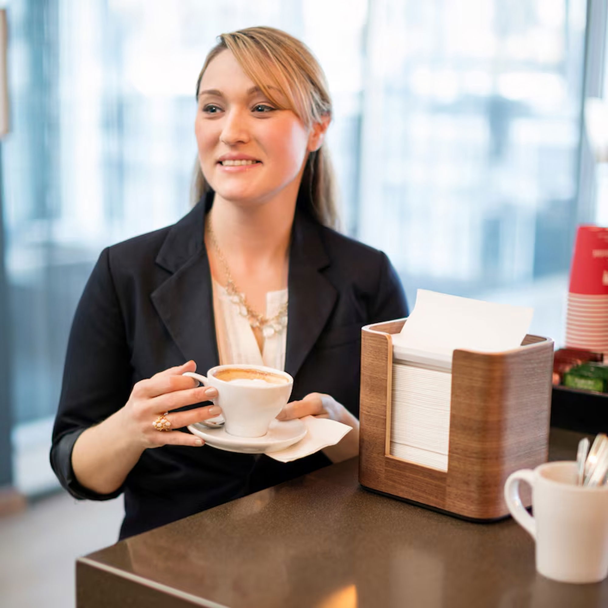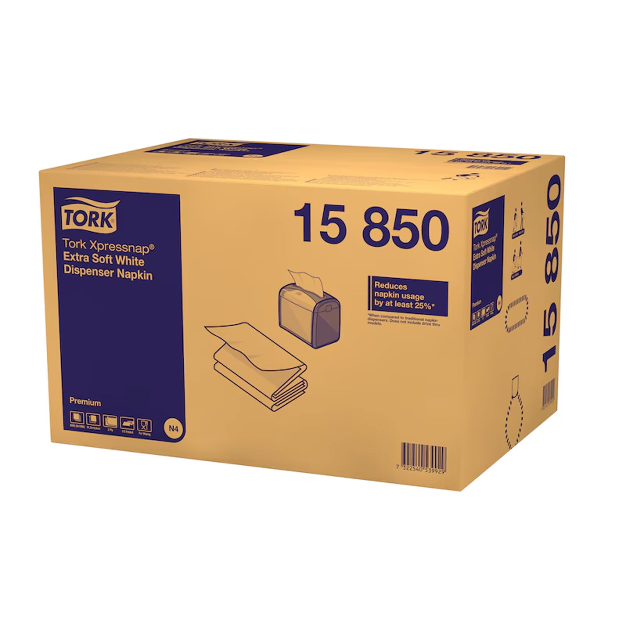 Die hochwertigen TORK Spenderservietten zeichnen sich durch ihre angenehme Handhabung aus und sind ideal für stark frequentierte Orte geeignet. Im Vergleich zu herkömmlichen Spenderserviettensystemen reduzieren diese Servietten den Verbrauch um mindestens 25%. Zudem sind die Servietten hygienisch im Serviettenbeutel verpackt, um sie zu schützen.