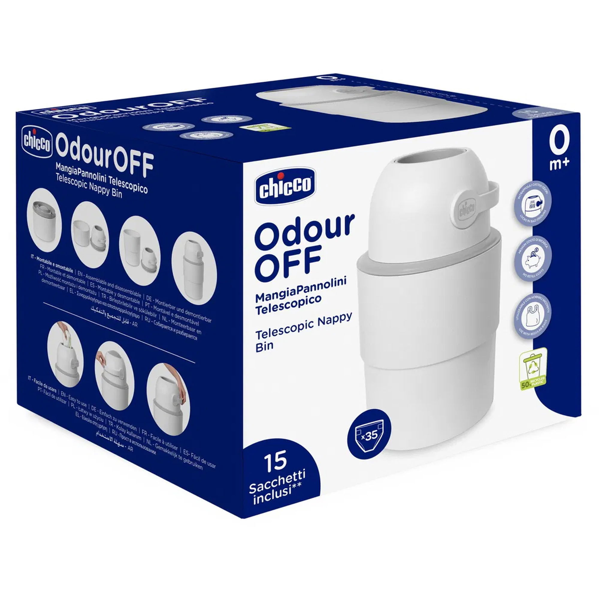 Der Chicco Teleskop Windeleimer Odour Off sorgt für eine hygienische und geruchsfreie Entsorgung von Windeln. Dank des innovativen Dichtungssystems werden unangenehme Gerüche zuverlässig eingeschlossen. Der praktische Teleskopmechanismus ermöglicht eine kompakte Lagerung und erleichtert Transport und Aufbewahrung. Der Windeleimer kann mit handelsüblichen Müllbeuteln verwendet werden, sodass keine teuren Nachfüllkassetten erforderlich sind. Mit Platz für bis zu 35 Windeln ist er ein praktischer Helfer im Babyalltag und lässt sich mit nur einer Hand in wenigen Schritten bedienen.