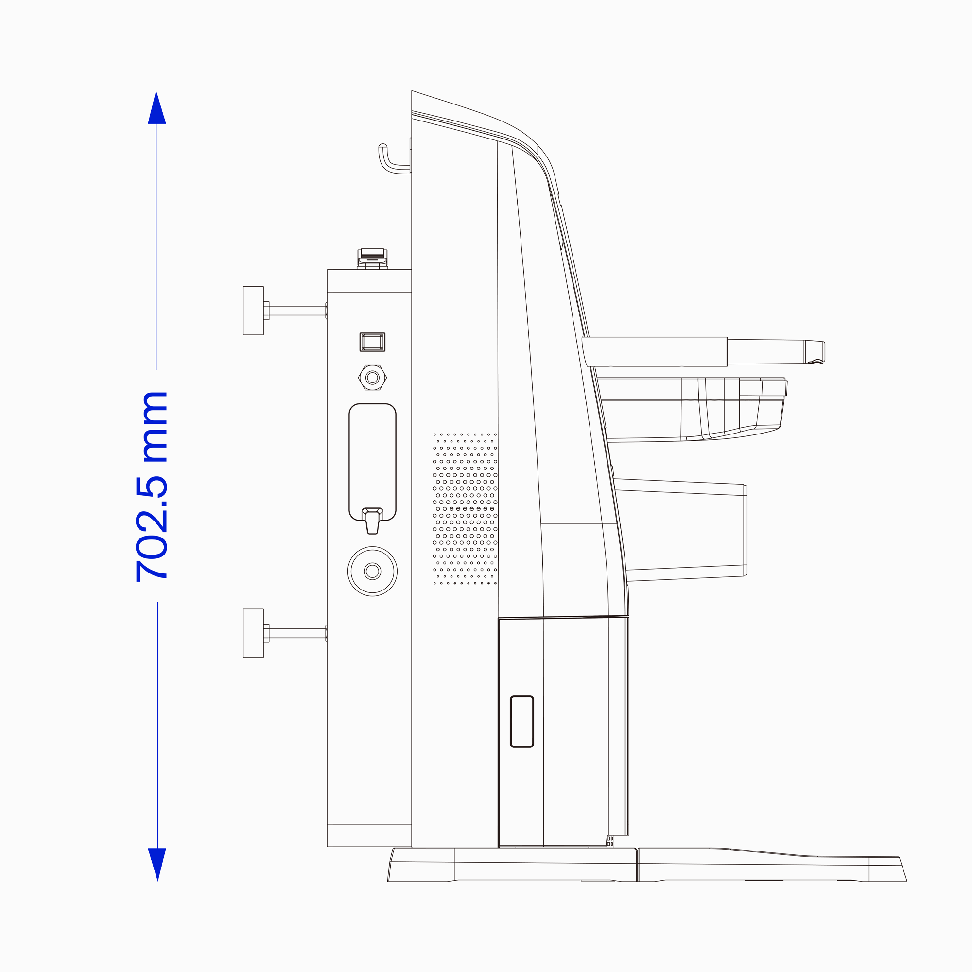 | Anforderungen an die Installation | Bodenbefestigung oder Rückwandbefestigung; vor dem Arbeitsplatz ist ein Freiraum von mindestens 2.0 m, rechts und links von der Mitte des Arbeitsplatzes ein Freiraum von mindestens 0.6 m einzuhalten |